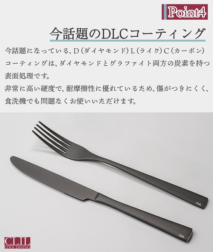 ・CLIL 純チタンDLCコーティング ナイフ&フォーク 4組