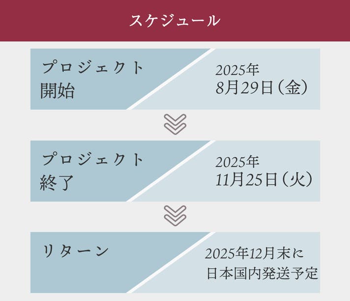このプロジェクトはAll in型です。目標金額の達成に関わらず、プロジェクト終了日の2025年11月25日までに支払いを完了した時点で購入が成立します。