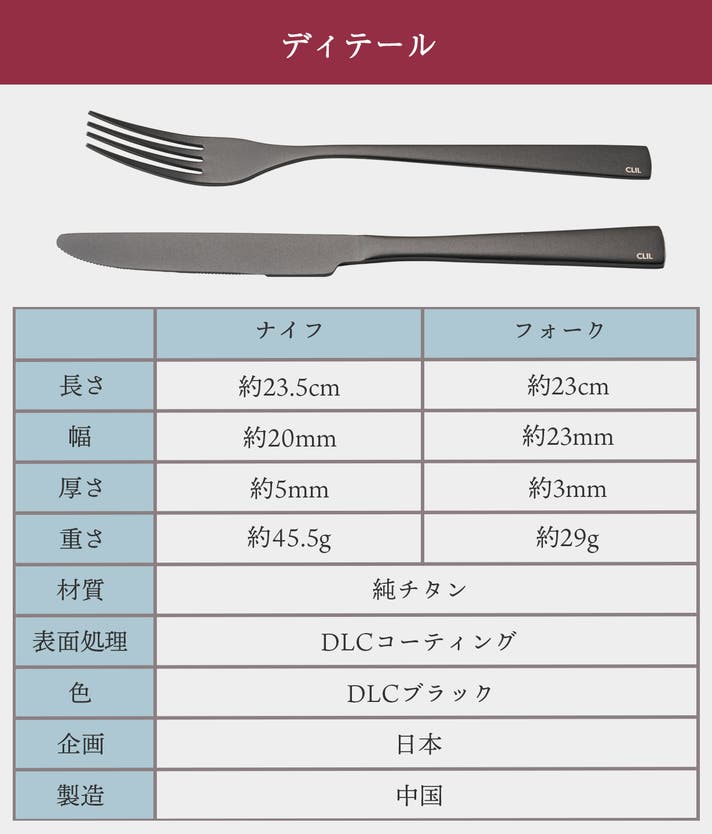 ・CLIL 純チタンDLCコーティング ナイフ&フォーク 1組
