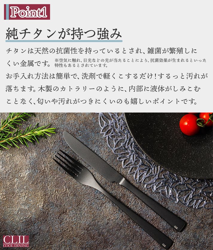 ・CLIL 純チタンDLCコーティング ナイフ&フォーク 2組