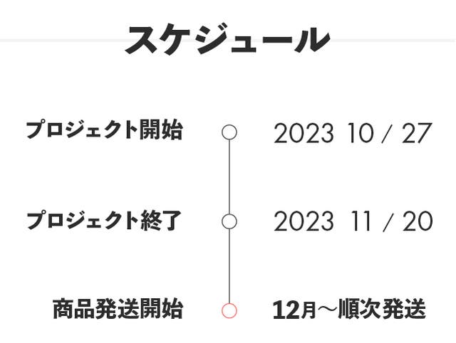 このプロジェクトはAll in型です。目標金額の達成に関わらず、プロジェクト終了日の2023年11月20日までに支払いを完了した時点で購入が成立します。