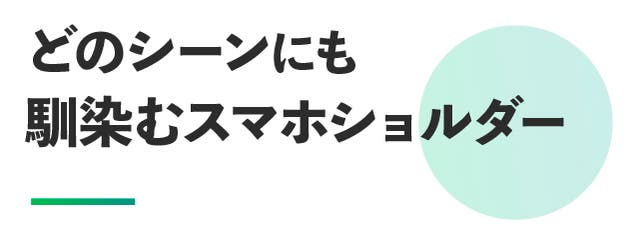 - スライド部の範囲が拡大。最短でのスマホへのアクセスと+αの携行を実現したスマホショルダー。