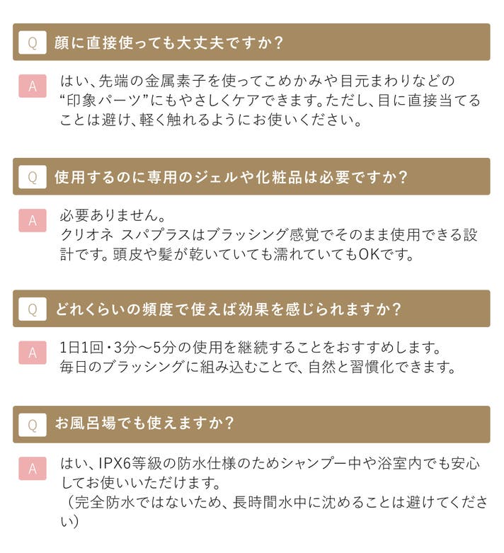 クリオネ スパプラスは、防水設計(IPX6)だからお風呂でも使えます。