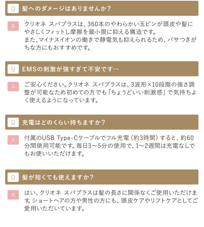 クリオネ スパプラスは、360本のやわらか2段構造ピンを搭載。