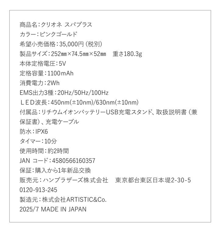 クリオネ スパプラスは、EMSの周波数を