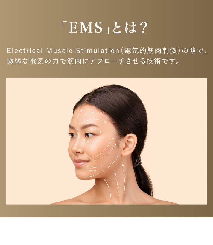 表情の印象を左右する“こめかみや目まわり”にもEMSの刺激がしっかり届きます。