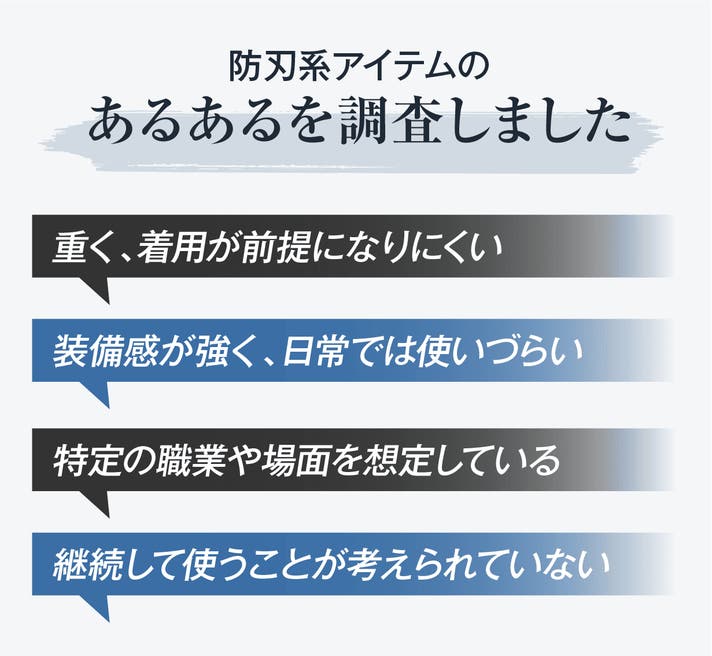 防刃対策は気になるけれど、大げさな装備には抵抗がある。