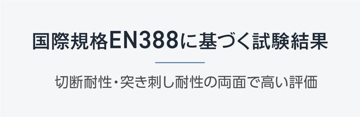 この素材特性をもとに、切断耐性・突き刺し耐性の両面でEN388規格に基づく試験評価を行っています。