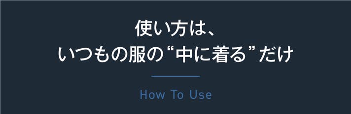 普段着ている服の下に、いつものインナーと同じ感覚で着用してください。