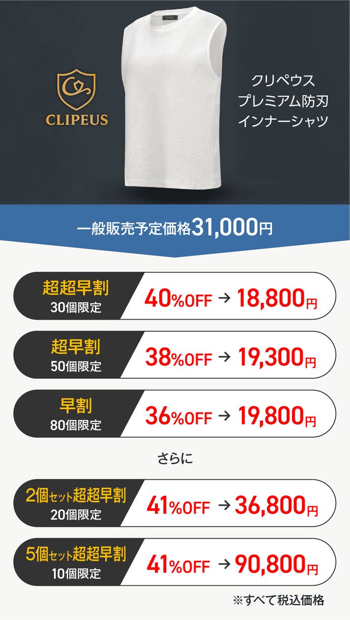 【2個セット超超早割・41%オフ】クリペウス プレミアム防刃インナーシャツ×2