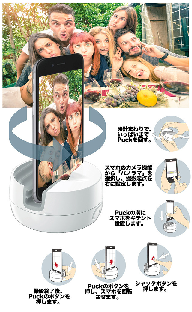 CliqueFie Puckを使うと、誰でも上手にパノラマ写真を撮ることができます。