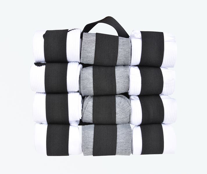 12本のワイドなゴムバンドで、靴下や下着を種類ごとに整理して収納できます。持ち手も付いているため、収納パーツだけを外して洗面所やクローゼットに持ち運ぶこともできます。不要な時は外しておける柔軟な構造で、必要に応じて簡単に付け直すことができます。