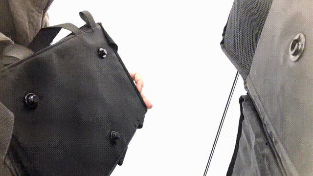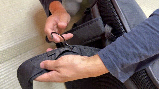 必要なときだけサッと取り出せ、背負う際はきれいに隠れるスマートな設計です。