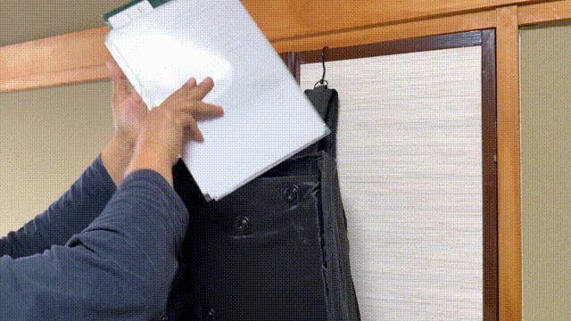 マグネット式の着脱構造と持ち手付きのデザインにより、収納バッグだけを取り外して、クローゼットやフックなど好きな場所に掛けて使えます。