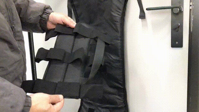 取り付けは面ファスナー式で、着脱はワンタッチ。