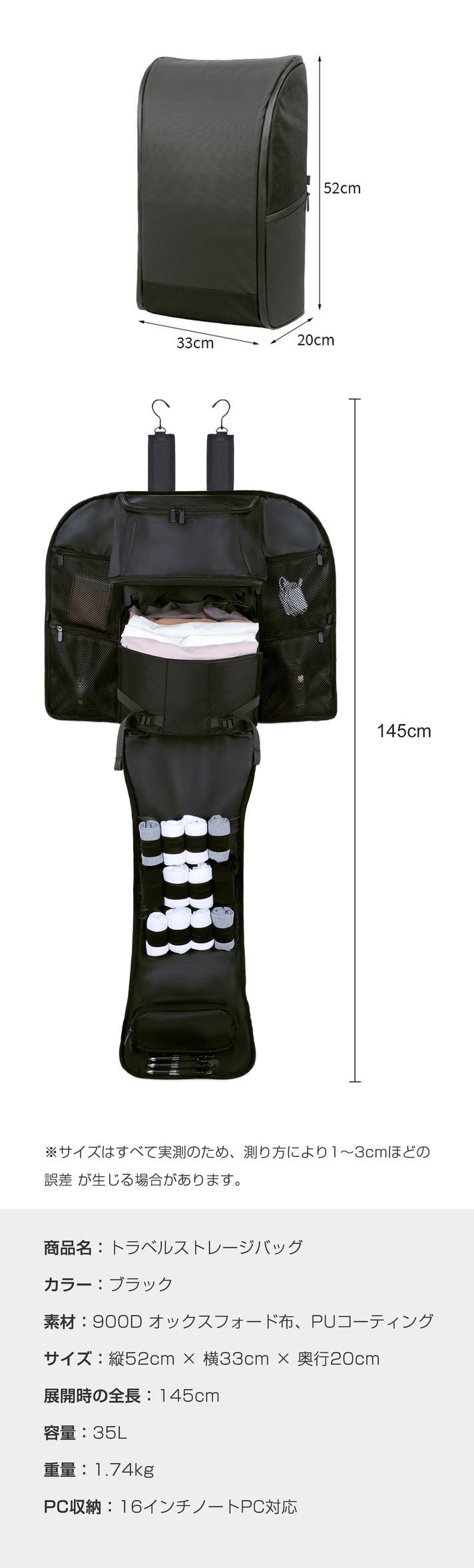 大容量かつ仕分けしやすい構造で、旅行の準備・滞在中の整理が格段にラクに。