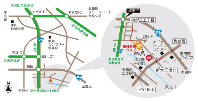 名古屋市天白区に隣接した広大な農業振興地域、この奇跡的に残された水田地帯に郊外田園クラブはあります。