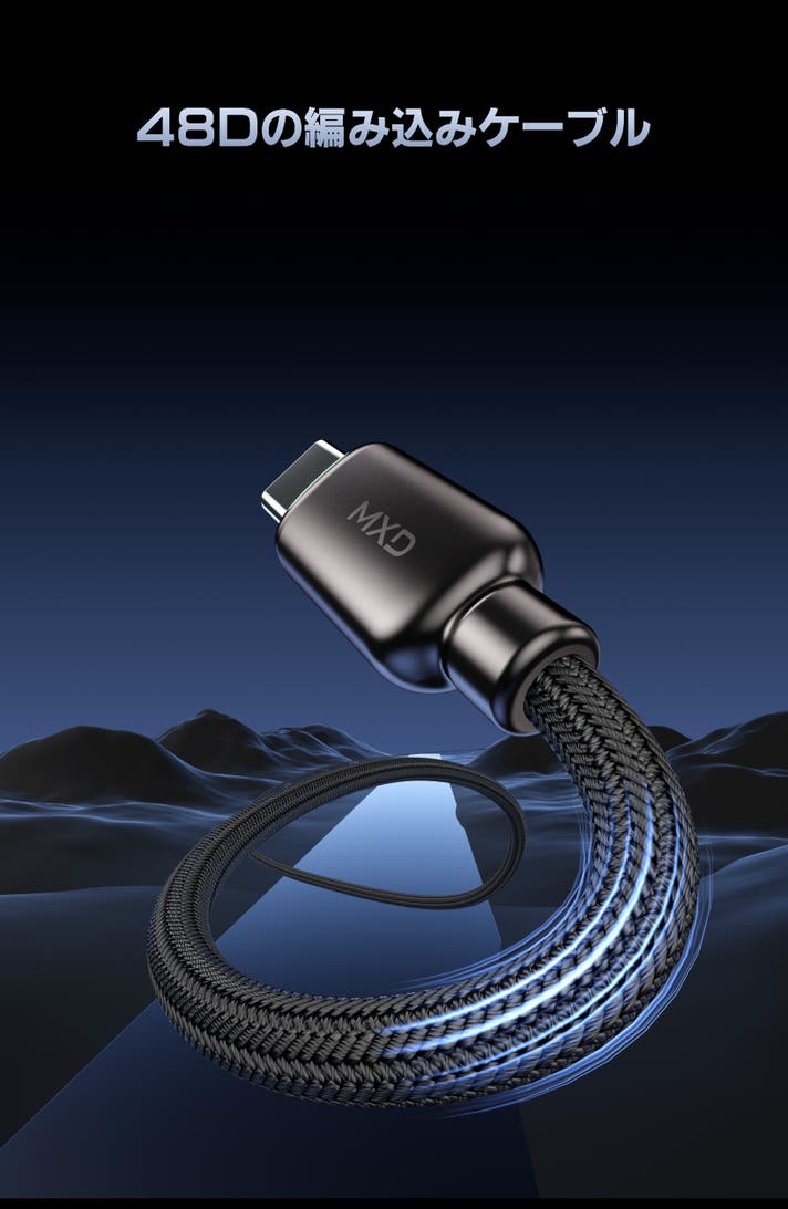 メタル外装+48D高密度編組ケーブルを採用。しなやかで断線しにくく、日常のハードな使用にも耐える設計。