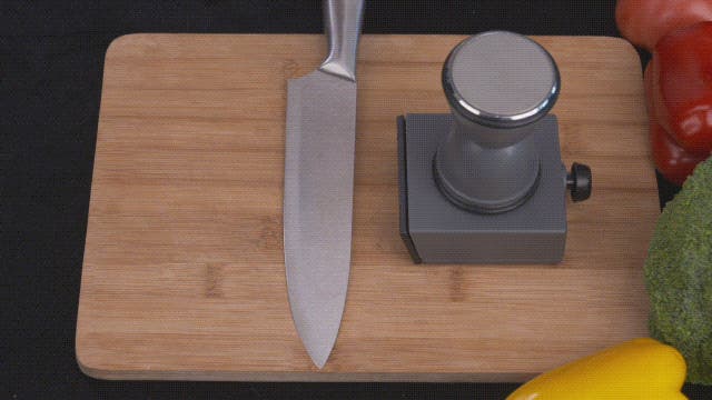 一回固定すれば、ボタンを回すだけで、包丁を取らずに角度が調節できます。