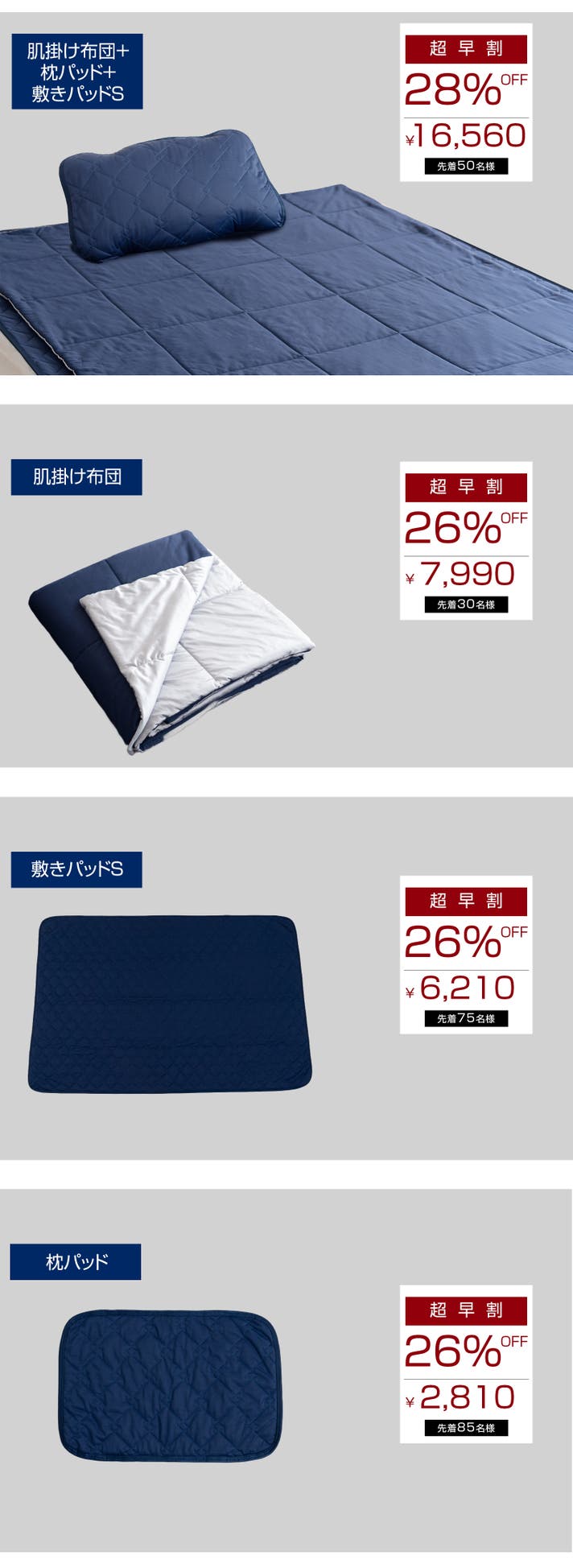 【超早割28%OFF】肌掛け布団+枕パッド+敷パッドS