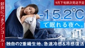 - 独自開発の2重織冷感生地、自社最高Q-MAX値0.587、-15.2℃のひんやり冷感を実感!