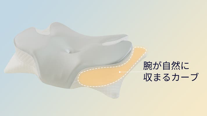 枕の両サイドに設けたくぼみが、手や腕が自然におけるスペースに。