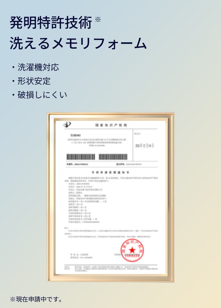 「メモリフォームは洗えない」という常識を変えました。独自技術により、枕本体全体を丸洗い可能に。