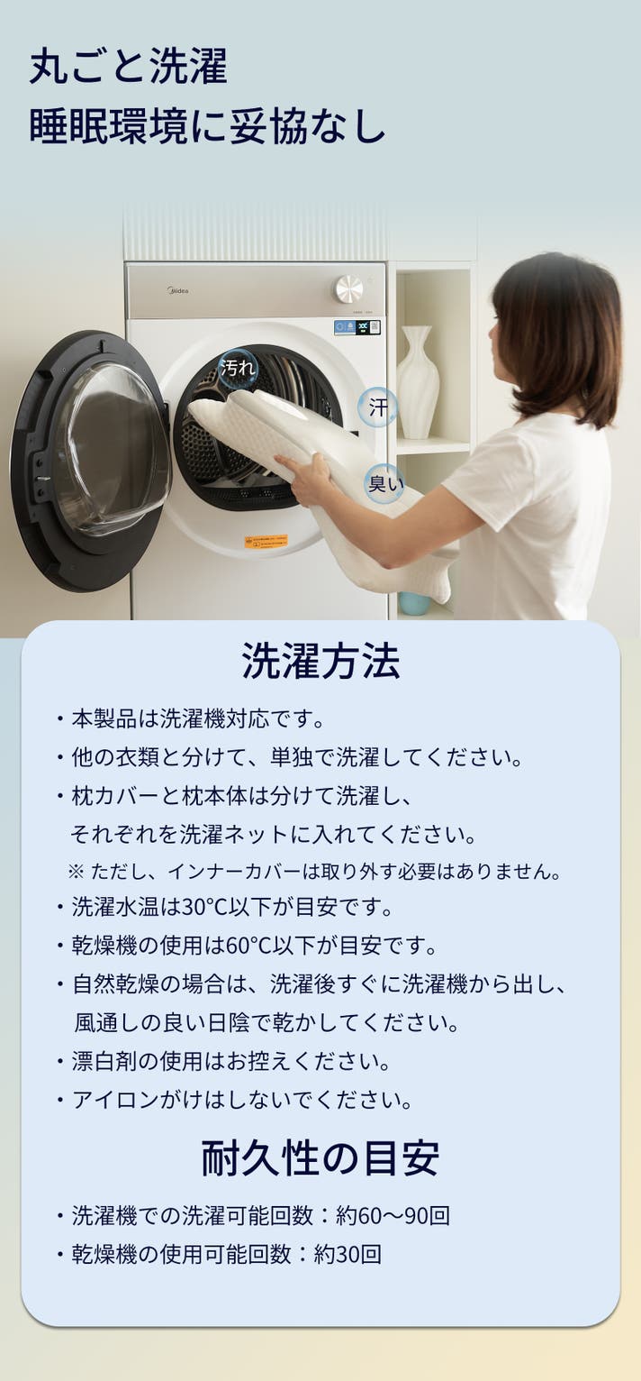 毎日清潔に、丸洗いできるメモリフォーム
