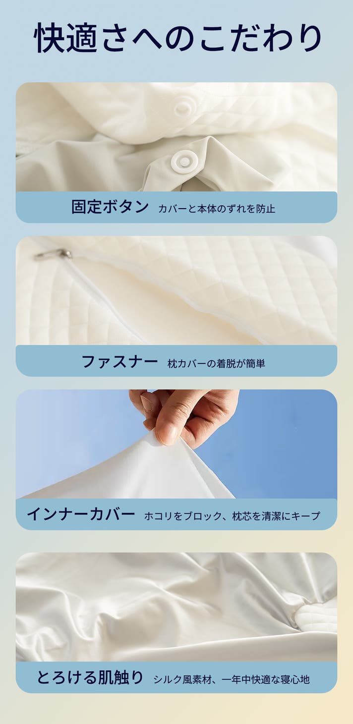 - 【丸洗い】独自の発泡技術、洗濯機での丸洗いが可能。通気構造&シルクタッチ、一年中快適。
