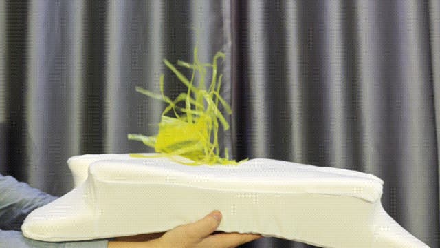 A. 圧縮して箱に入れての発送となります。商品が届きましたら、枕をパッケージから取り出し、平らに広げてください。形状が復元しましたらご利用いただけます。