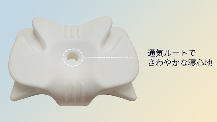 後頭部安定ホールを少し低く設計。仰向けに寝た時、頭が自然に少し沈み込むことで、頭と首が理想的な高さに保たれます。