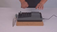 「マルチ電動包丁研ぎ器」刃をスライドするだけの直感的操作。初心者や高齢者でも安心。たった数十回のスライドで切れ味回復、電動モーターが微細な研削を行い、手研ぎより短時間で確実に復元できる。