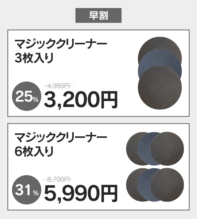 【超早割】驚異のマジッククリーナー×3個セット 一般販売予定価格4,350円の32%OFF ■本体×3個 ■日本語説明書×3枚 ※ご注文状況、使用部材の供給状況、製造工程上の都合等により出荷時期が遅れる場合があります。 ※皆様の応援購入により量産効率が向上した場合、正規販売価格が販売予定価格より下がる可能性もございます。