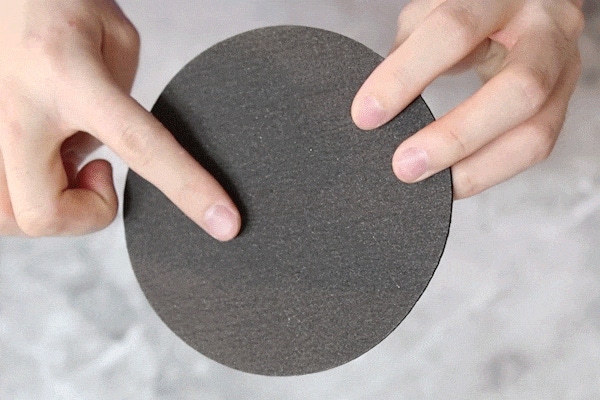 実際に刃物などに使われる研磨剤を使用し、宝石を研磨する時に使うサンドペーパーでキッチン用のスポンジをつくったらどうだろうかと考えるようになりました。