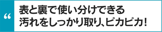 - 表裏で使い分け!汚れをとるだけでなく、ピカピカにする光沢機能まで備えた!