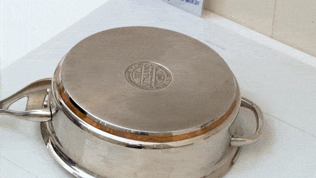表で汚れや焦げなどを取った後に、裏で磨いて光沢を出せば終わりです。