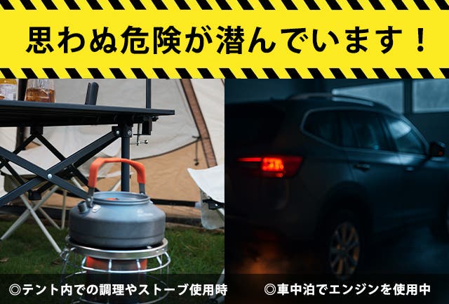 冬の室内だけでなく、テント内での調理や暖房使用時など、キャンプでも発生するリスクがあります。
