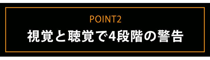 さらにビープ音でも警告を発するため、目と耳の両方で危険を即キャッチ。4段階の分かりやすいアラートが、的確かつ迅速な対応をサポートします。