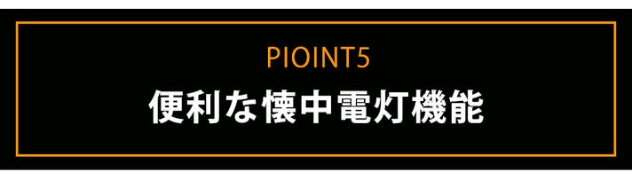 本体にはLEDライトを内蔵しており、暗い場所での移動や停電時の非常灯としても活躍。ボタンひとつで点灯できるので、いざという時も慌てず安心です。