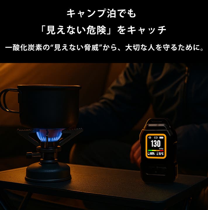見えないからこそ、備える。アウトドアでも、日常でも、一酸化炭素から家族を守る一台です。
