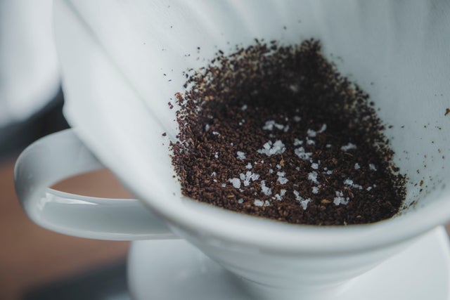 いつものように豆を挽いて、ご自身でコーヒーを淹れてください。その時『お湯を注ぐ前に』豆の上にお塩をひとつまみ振りかけてください。