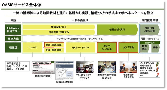 また、ビジネスの世界におけるこうした知識やスキルの有用性や認知の向上を目指し、「インテリジェンス・アナリスト」や「地政学リスクアナリスト」などの認定資格を設立することで、キャリアアップの一環としてOASISで学習し資格を取得するといった仕組みも構築してまいります。