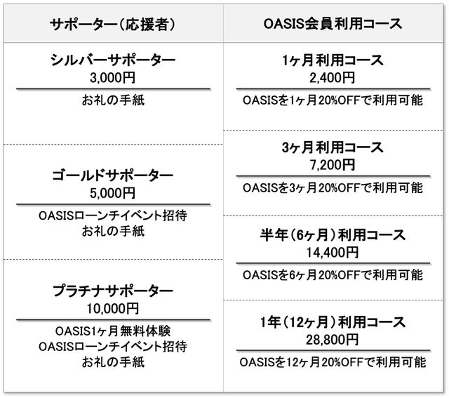 そこで今回Makuakeを通じて、OASISにご賛同いただける方を募集させていただきました。