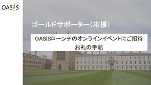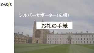 シルバーサポーターの皆様にはOASIS運営事務局より感謝の気持ちを込めたお礼の手紙をお送りさせていただきます。