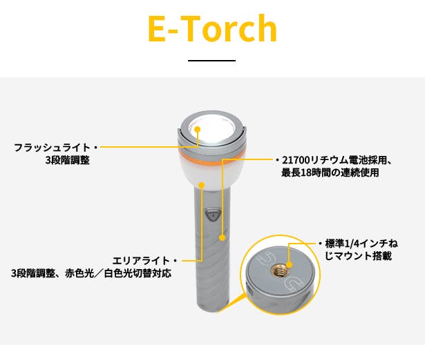 ※E-Torch懐中電灯は、撮影アームと組み合わせてご使用いただく必要がございます。