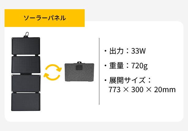 さらに、33Wソーラーパネルを追加装備することも可能です。太陽光を活用しながら機器へ効率よく電力を供給できます。あらゆる環境で、創作も探求も途切れさせません。