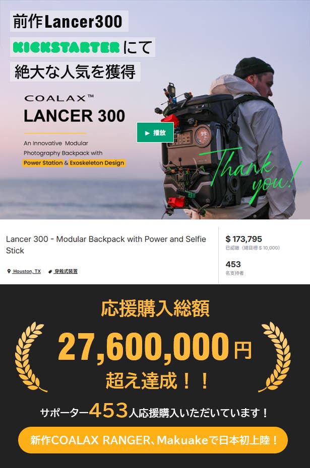 ※リターン品の配送が完了するまで、YMTREND株式会社はCOALAX RANGERの日本における独占販売権を有する正規代理店です。詳細に関しては、ページ下部のリスク&チャレンジをご確認ください。