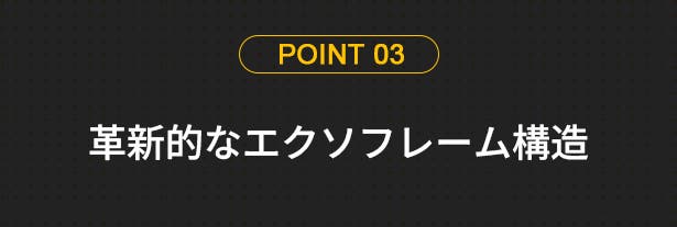 A:外骨格は改良ナイロン樹脂を使用しており、高い強度と優れた耐久性・柔軟性を併せ持っています。
