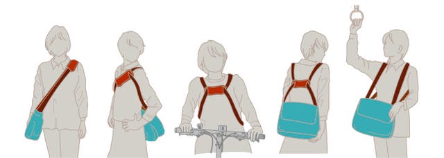 なにより「掛け方」が便利なコアルーバッグ。5通りの掛け方ができます。