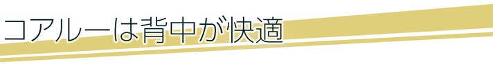コアルーバッグのリュック姿は背中ではなくどちらかというと腰とお尻に来ています。一見、揺れたりぐらついたりするのではないかと心配になる方もいらっしゃいますが、安定感は抜群! 何より背中に汗が溜まりにくいメリットがあります。